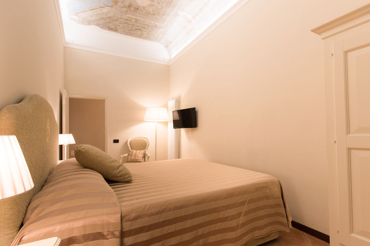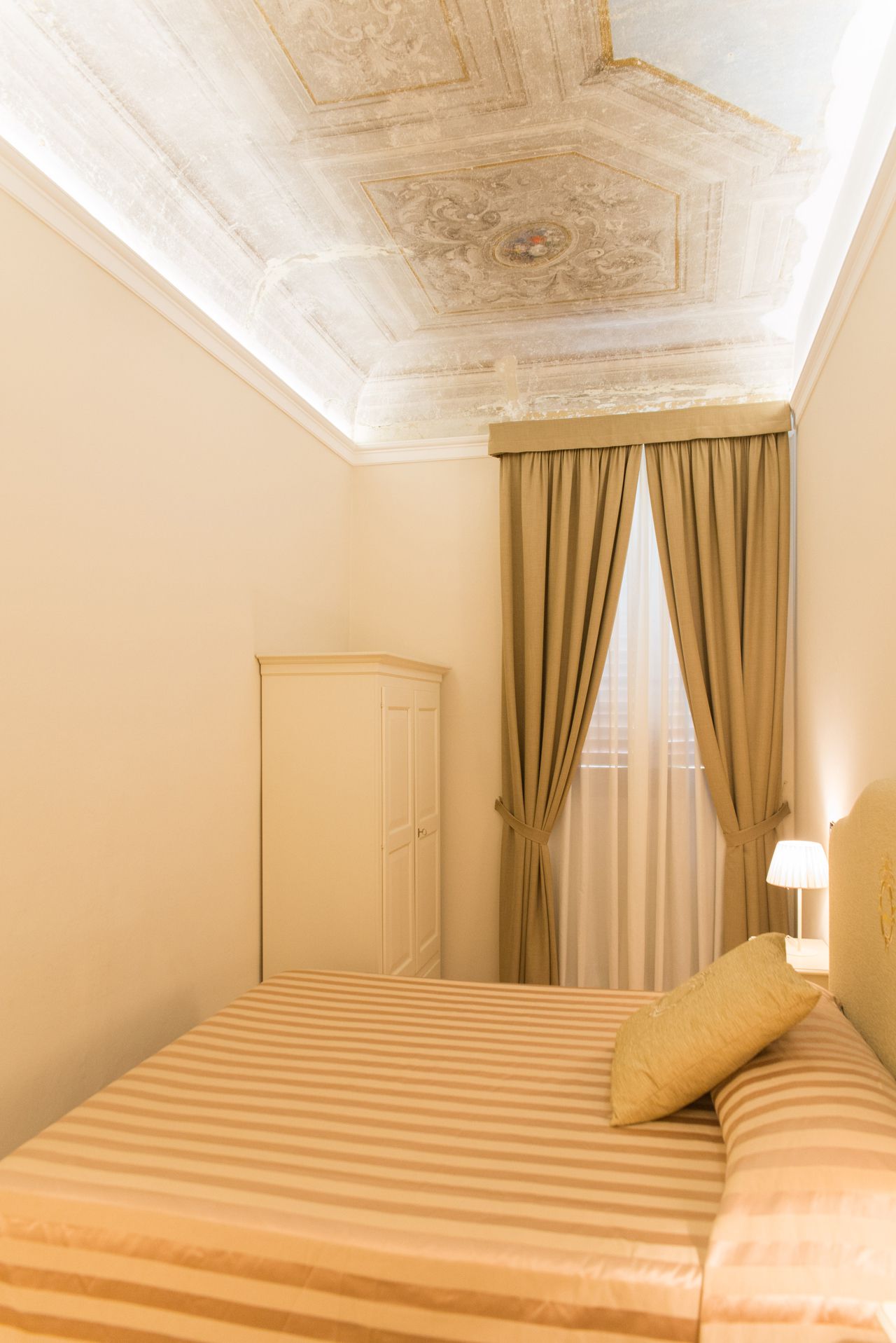 Questo appartamento è composto da stanza soggiorno, cucina ben attrezzata, con tavolo grande con divano letto matrimoniale e camera da letto matrimoniale (con particolare affresco sul soffitto), bagno privato con grande doccia, può ospitare fino a 4 persone, (2 adulti, 2 bambini) 2 posti in camera matrimoniale e 2 posti nel divano letto (per quest’ultima richiesto supplemento di €25 a persona).