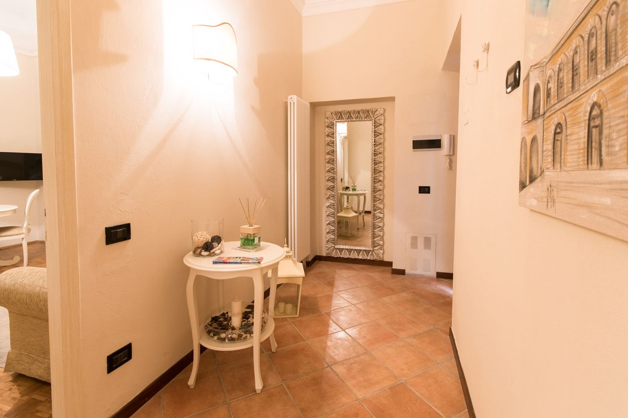 Bilocale di 60 mq, situato al primo piano di Palazzo Pontenani, arredata con mobilia stile classico contemporaneo.