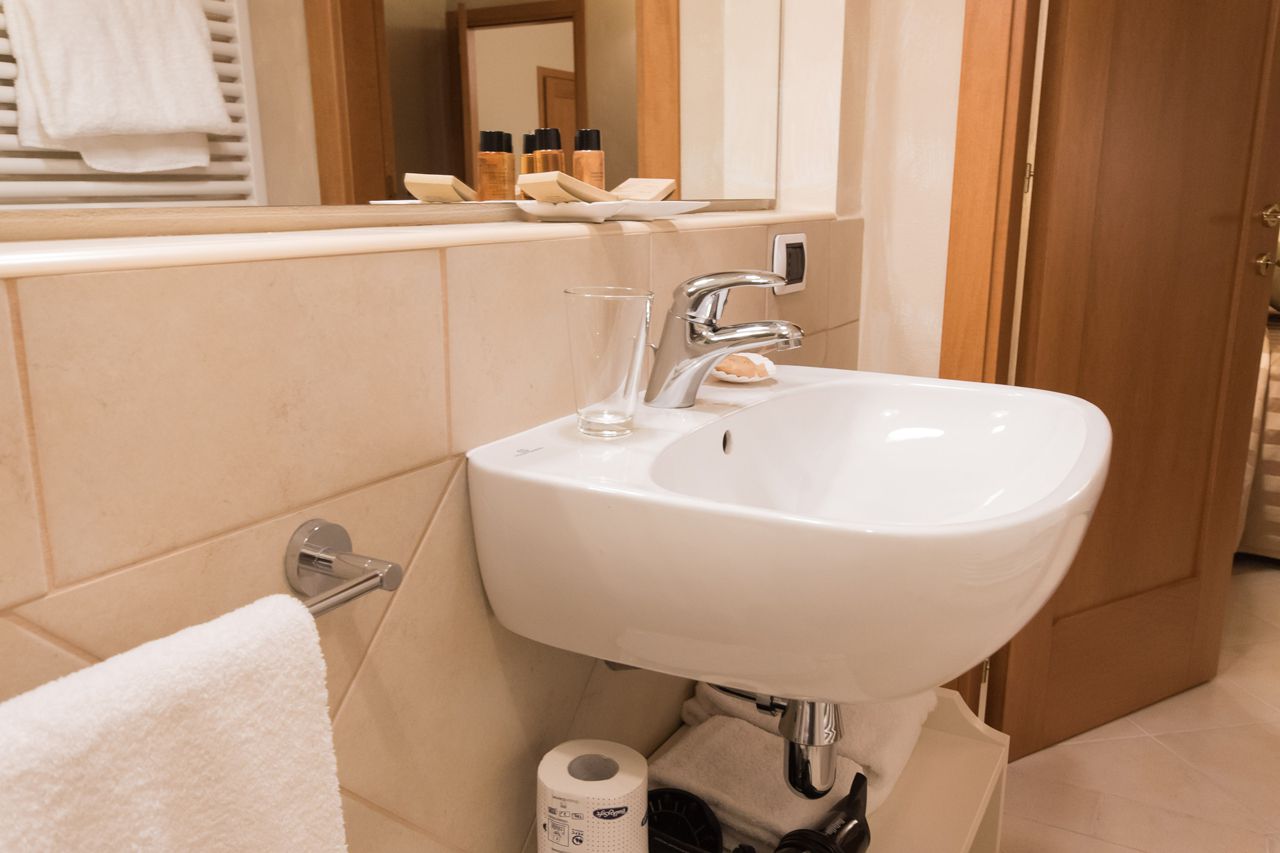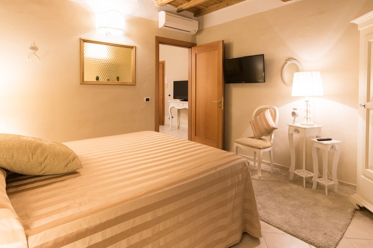 La Suite può ospitare fino a 4 persone, (2 adulti, 2 bambini) con 2 posti in camera matrimoniale e 2 posti nel divano letto (per quest’ultima richiesto supplemento di €25 a persona). La suite dispone di tutti i servizi, aria condizionata, riscaldamento autonomo, asciugacapelli, kit cortesia, tv led a schermo piatto, connessione Internet Wi-Fi, lavastoviglie, frigo-freezer, bollitore elettrico, forno a microonde, caffettiera italiana, lenzuola e asciugamani. Ampiezza del letto in una camera matrimoniale: 200×150.